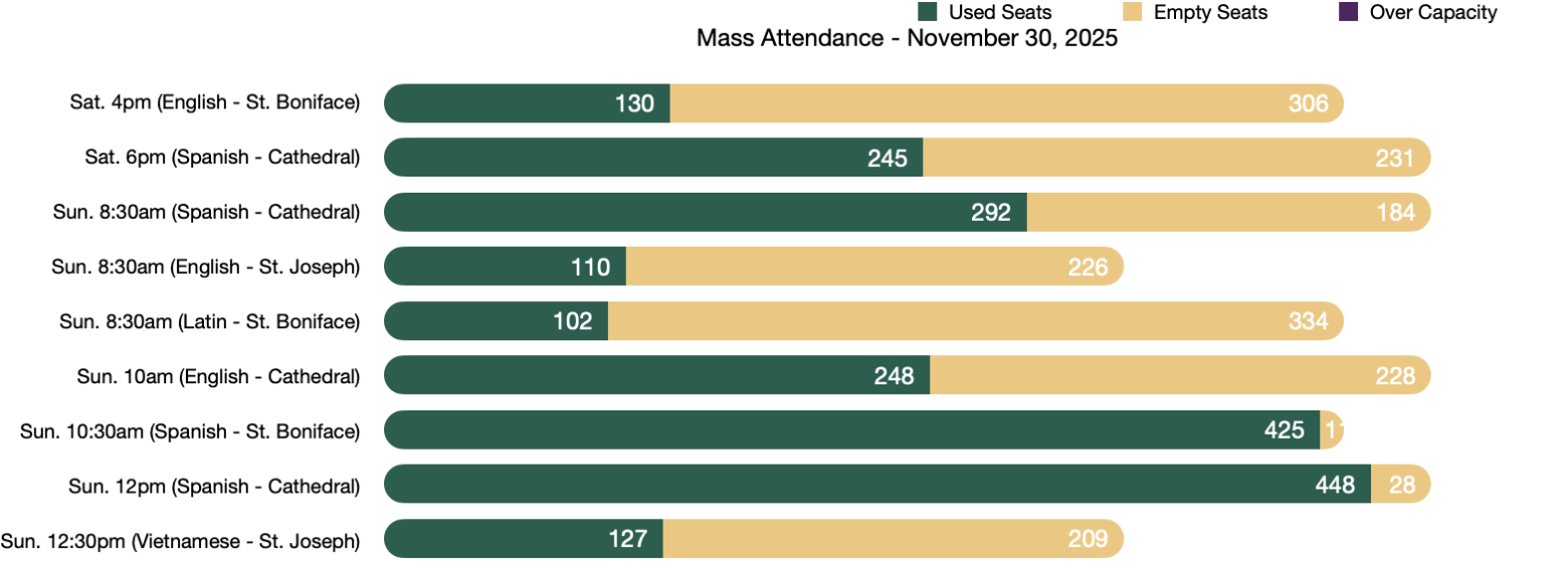 Many people hope for a White Christmas, but so far we’ve had a white beginning to Advent instead. Because of the winter storm over the weekend, our Mass attendance was understandably low, as you will see below. Nevertheless, Advent has begun, and we are now preparing to celebrate Our Lord’s first coming in Bethlehem two millennia ago, while also being reminded that we must be ready for His coming in glory at the end of time.